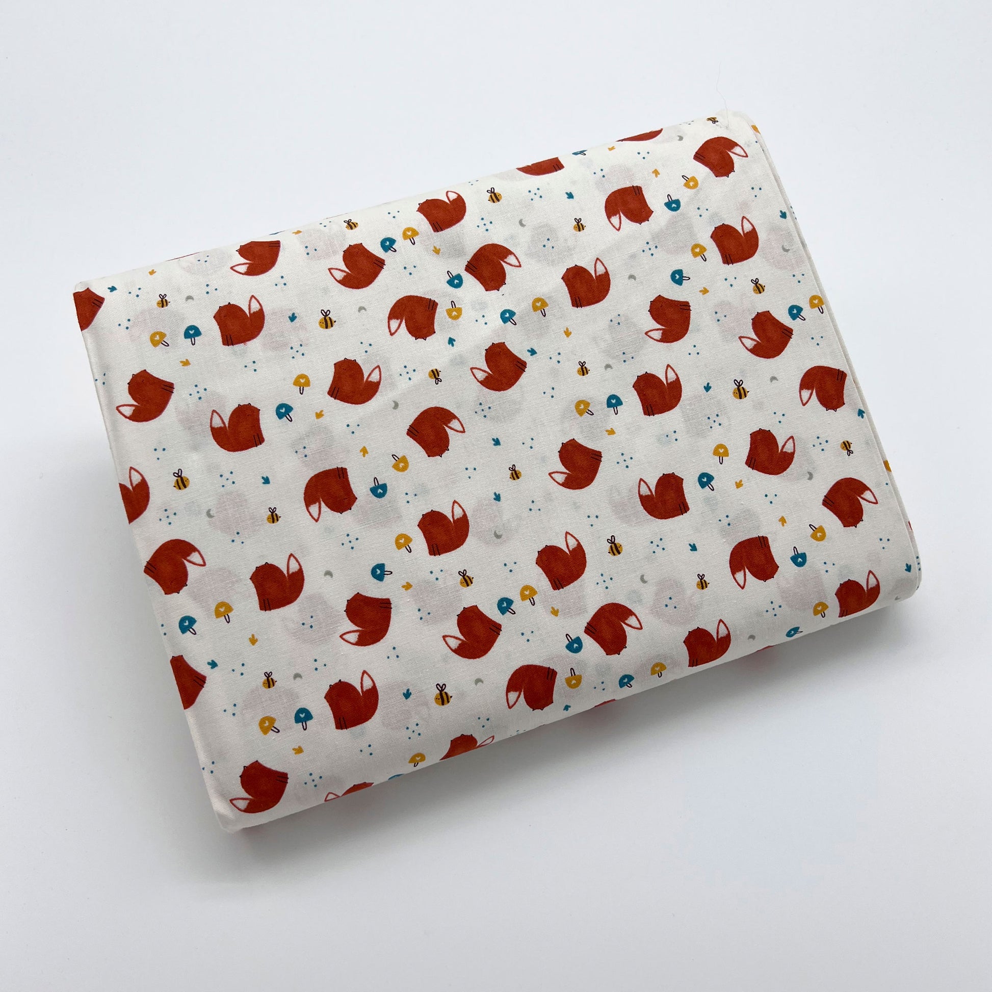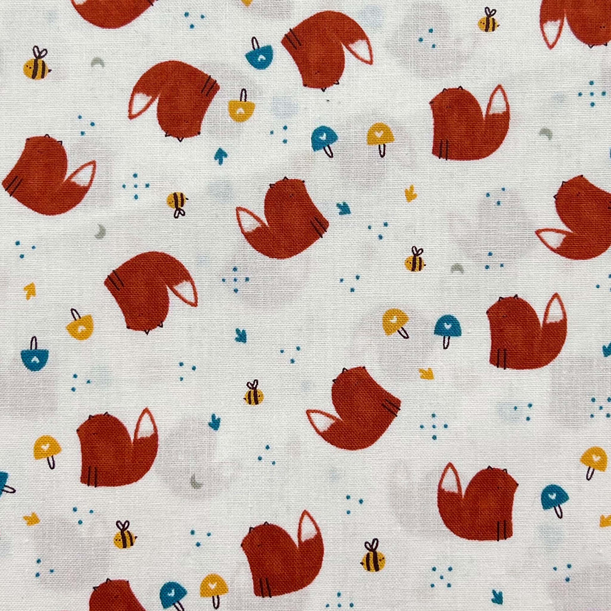 Tessuto a fantasia astratta con volpine su fondo bianco