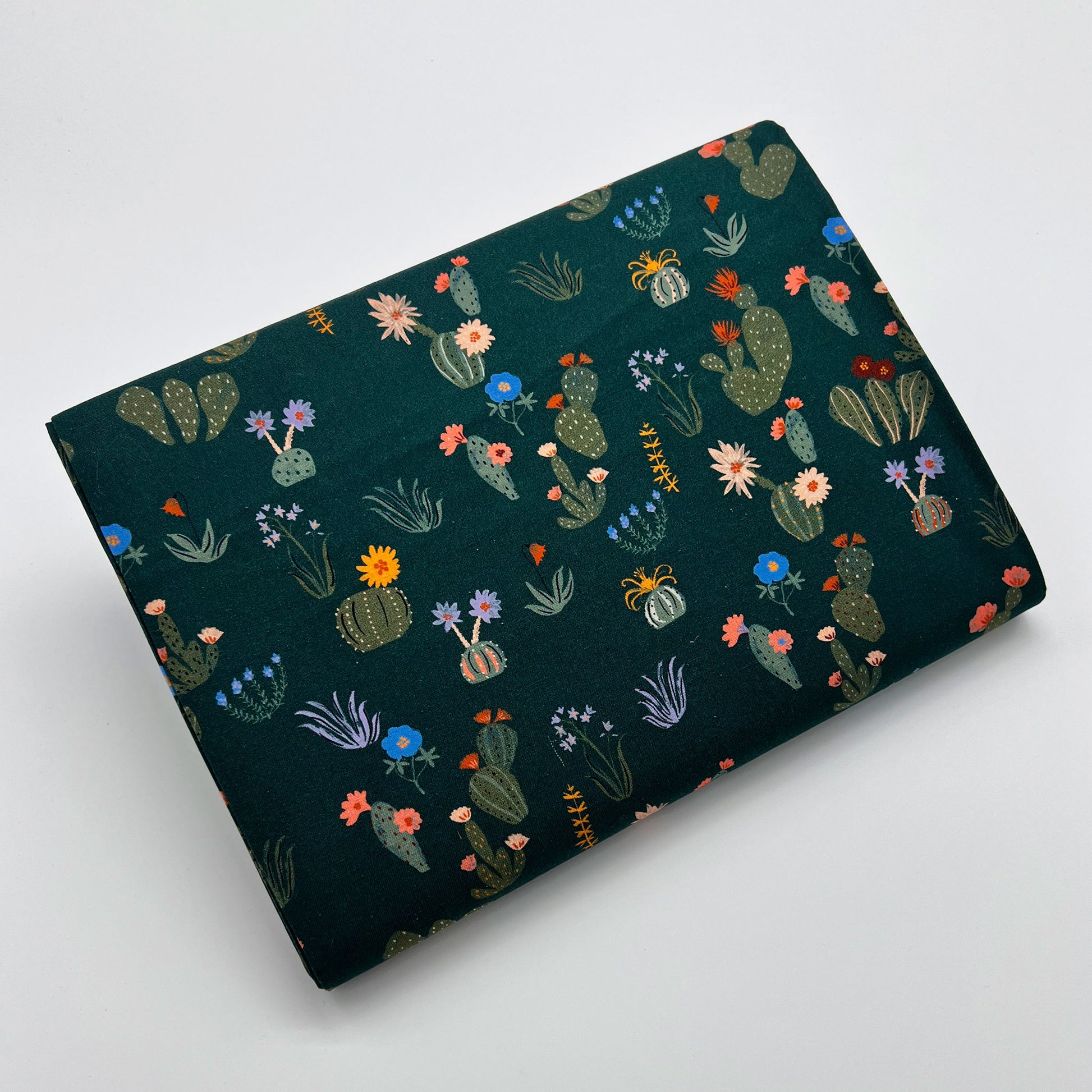 Tessuto a fantasia con cactus su fondo verde bottiglia