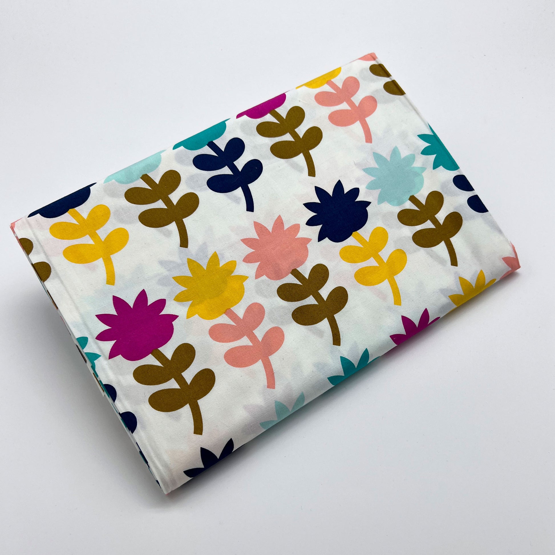 Tessuto a fantasia con fiori stilizzati su fondo bianco