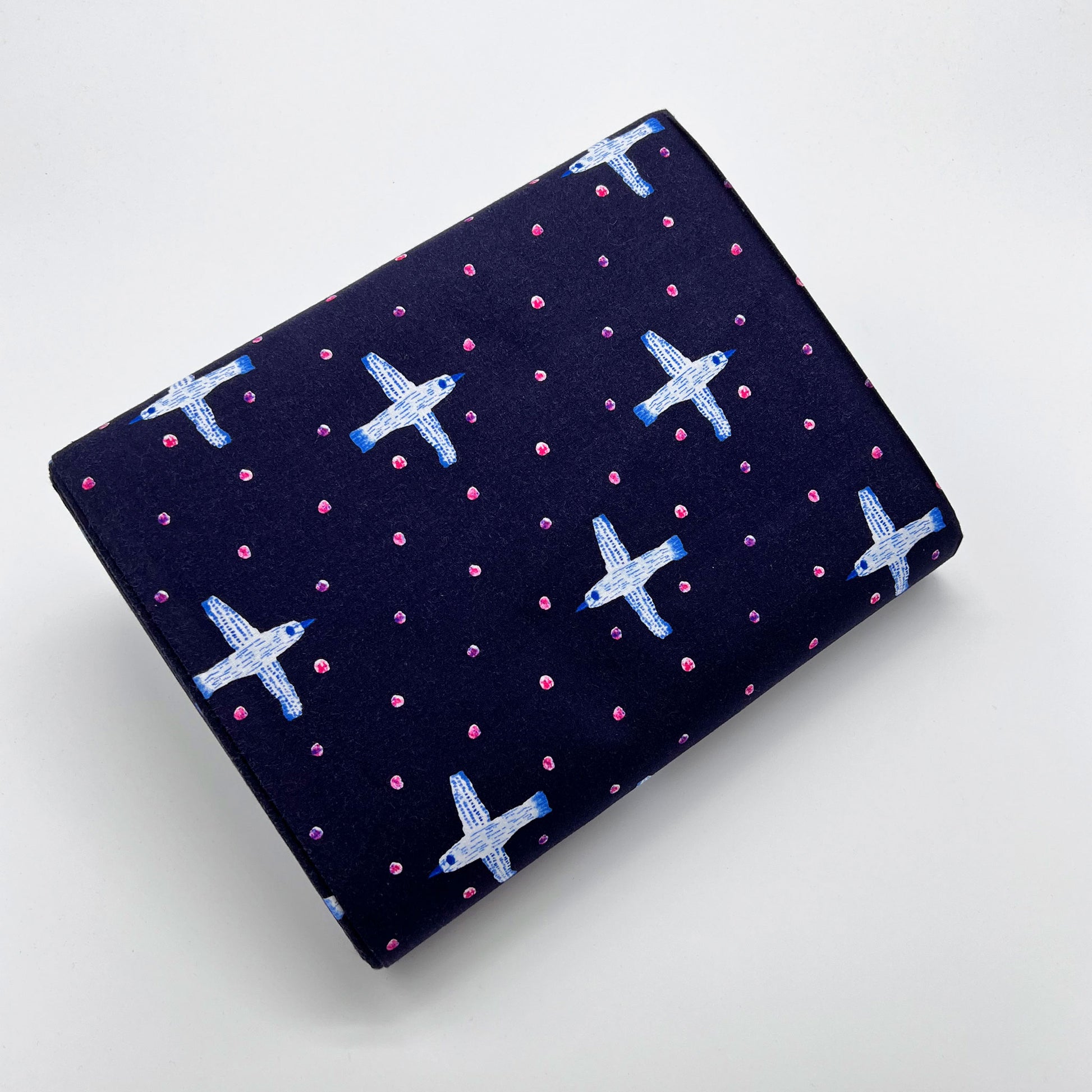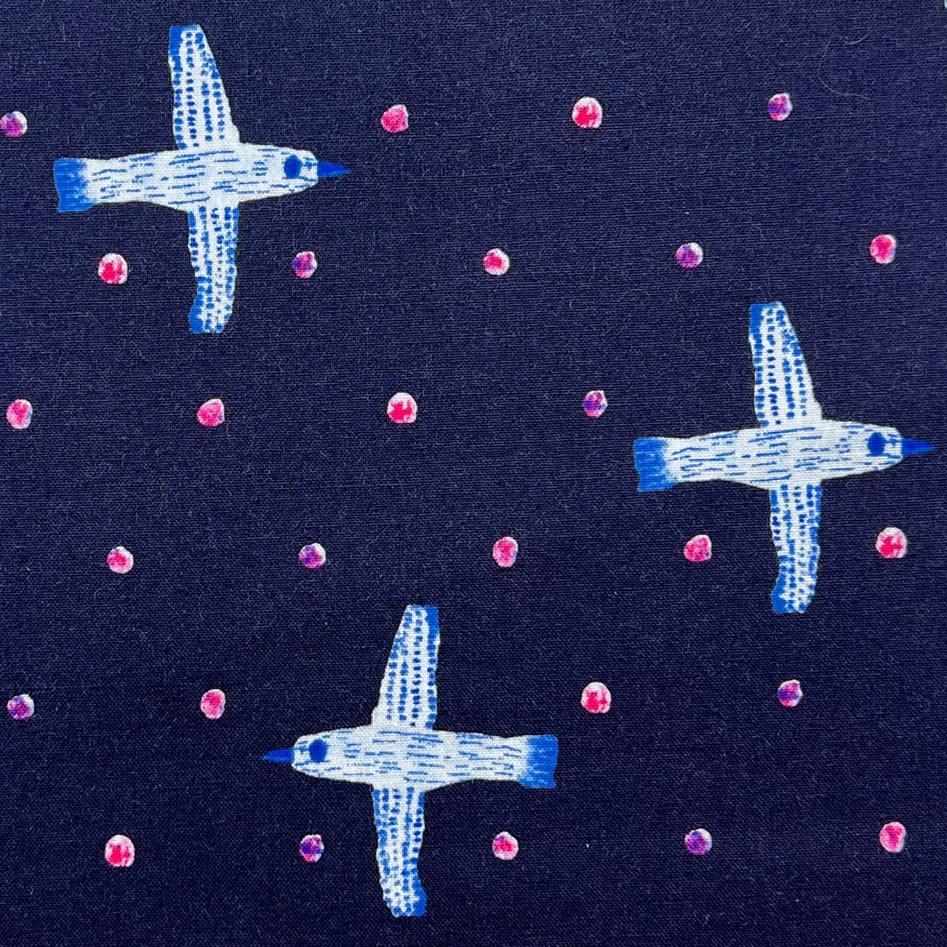 Tessuto a fantasia con gabbiani su fondo blu