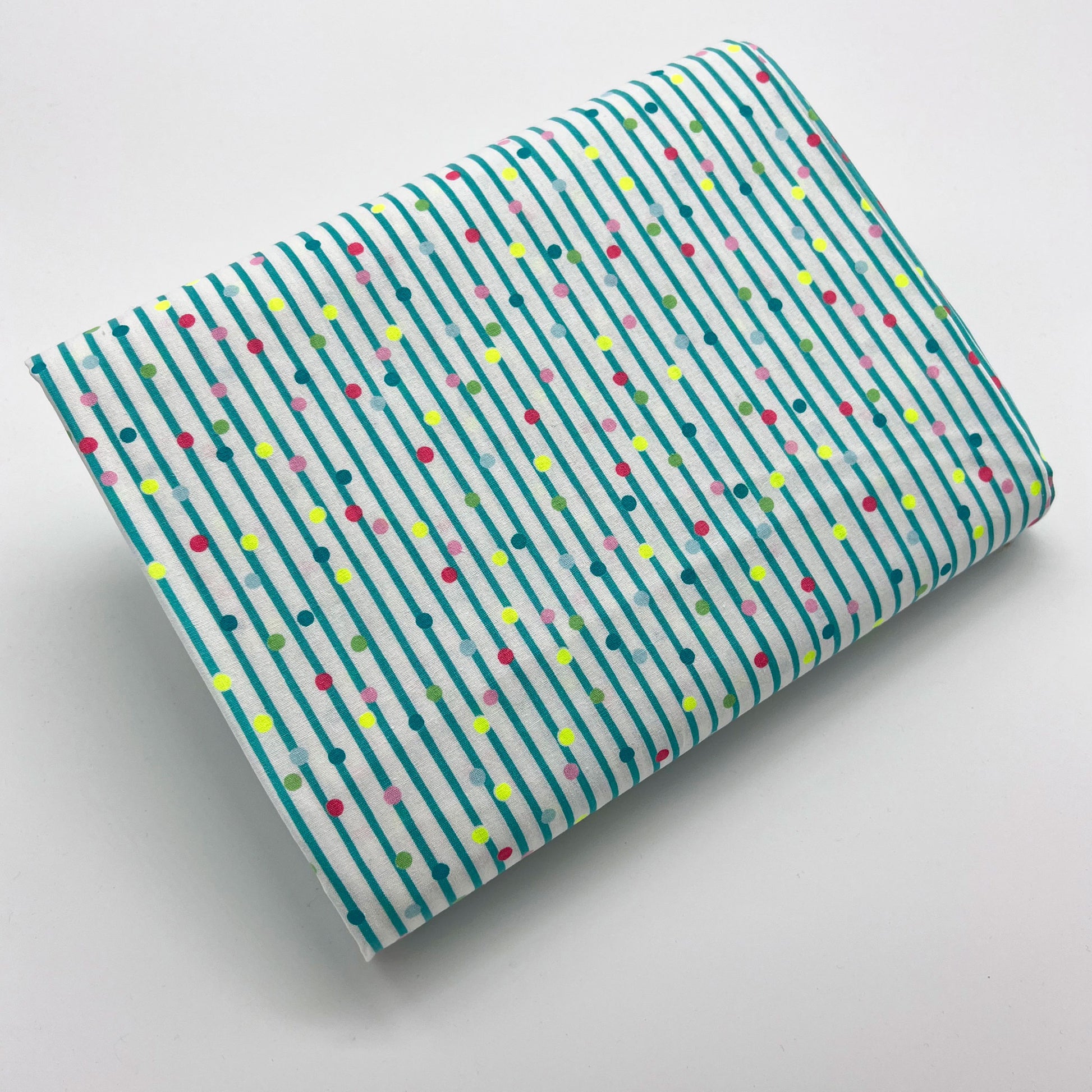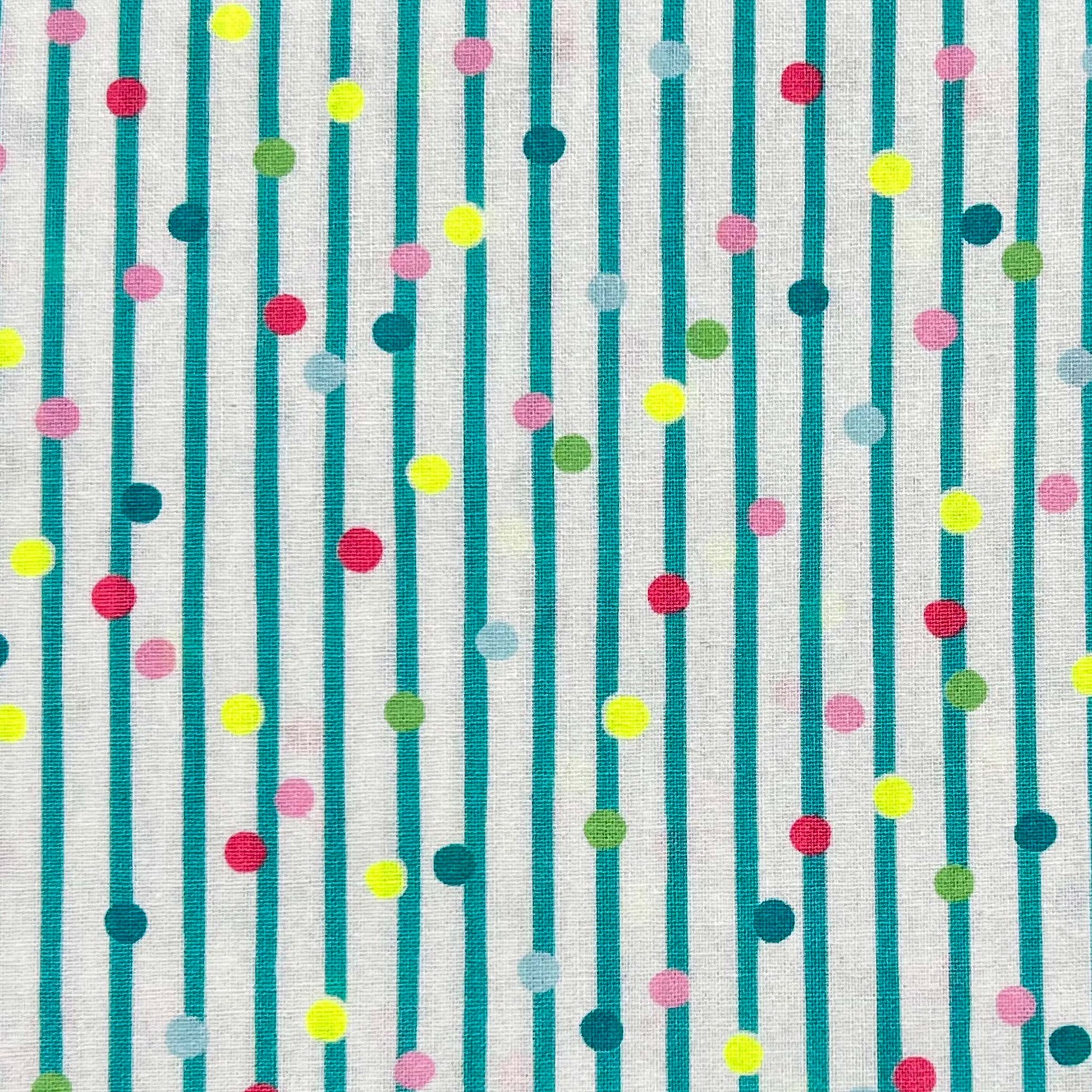 Tessuto a righe verdi e pois fantasia