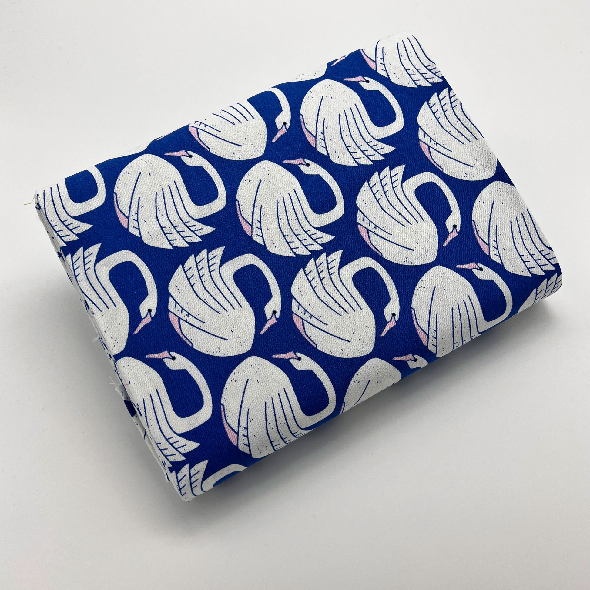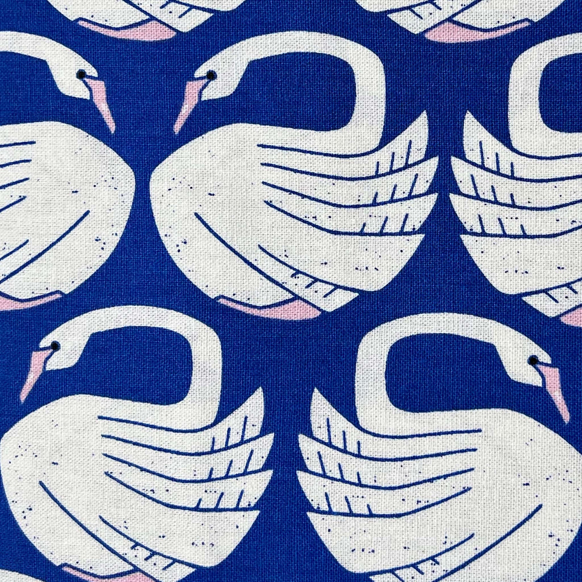 Tessuto a sfondo azzurro con cigni bianchi