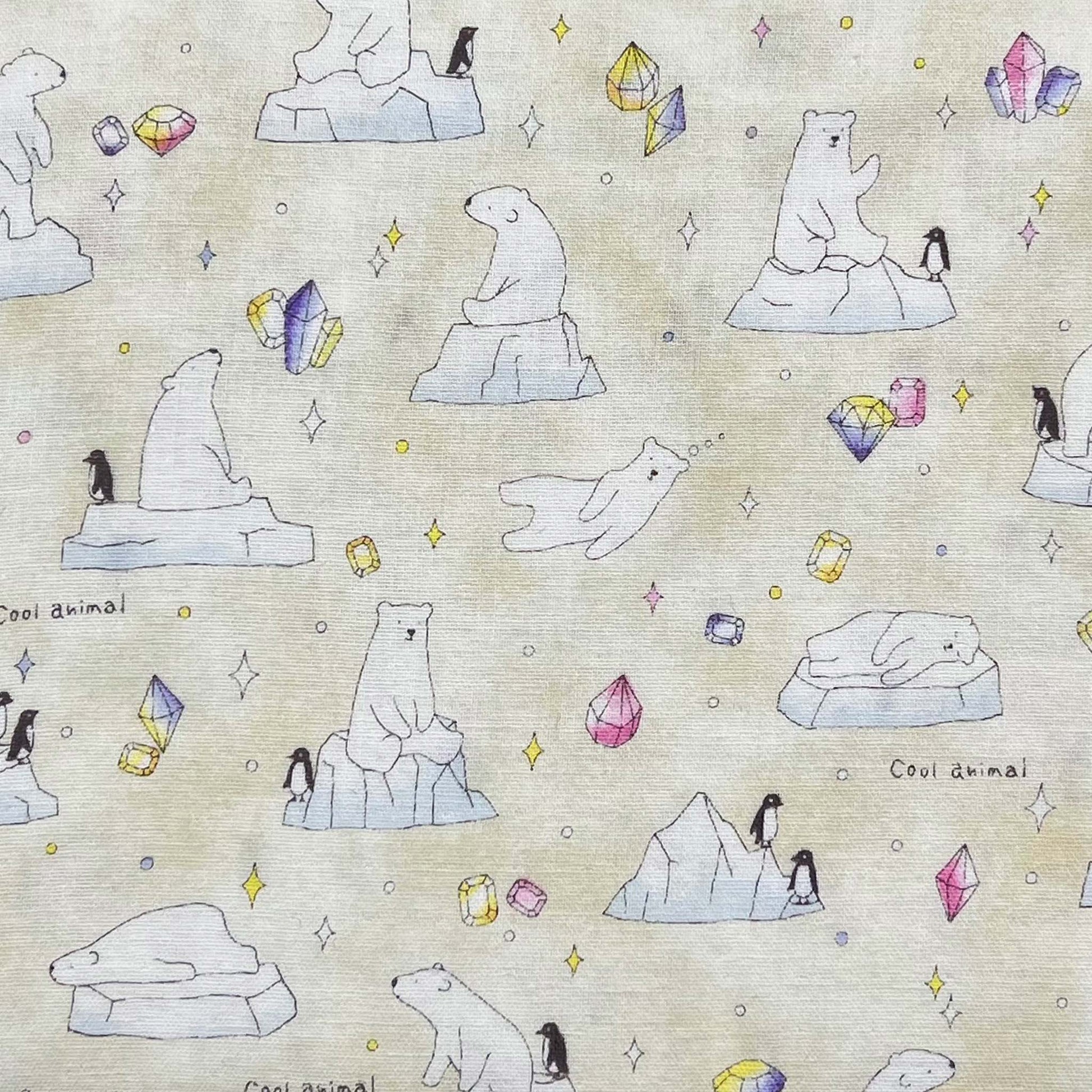 Tessuto leggero a fantasia con orsi (mussolina) su sfondo giallino